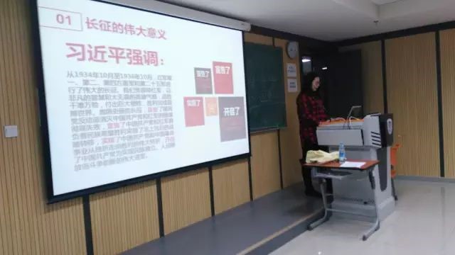 第一个环节,党支部书记介绍习主席在纪念红军长征胜利80周年大会讲话。对大会讲话的介绍分为四个部分