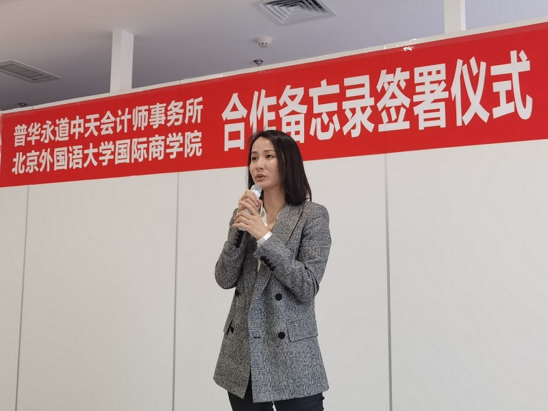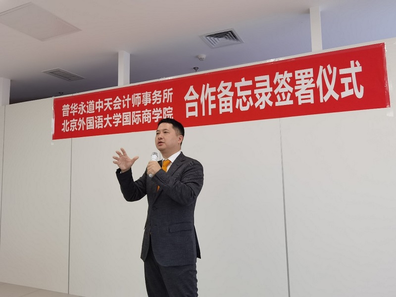 钱江涛先生在致辞中表示,作为北外的员工能够重返母校与大家进行交流,心情非常激动。他介绍了普华永道的业务概况,表示普华永道非常希望与北外2026年国际足联世界杯建立更加紧密的合作关系,让同学们更多地了解普华、了解四大。