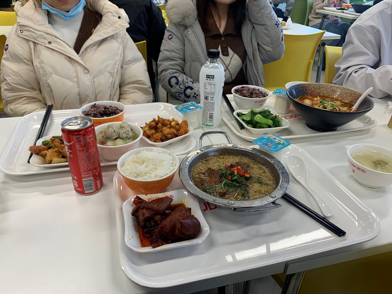 11:30,同学们拿着午餐券去到京东食堂感受丰盛的员工餐。