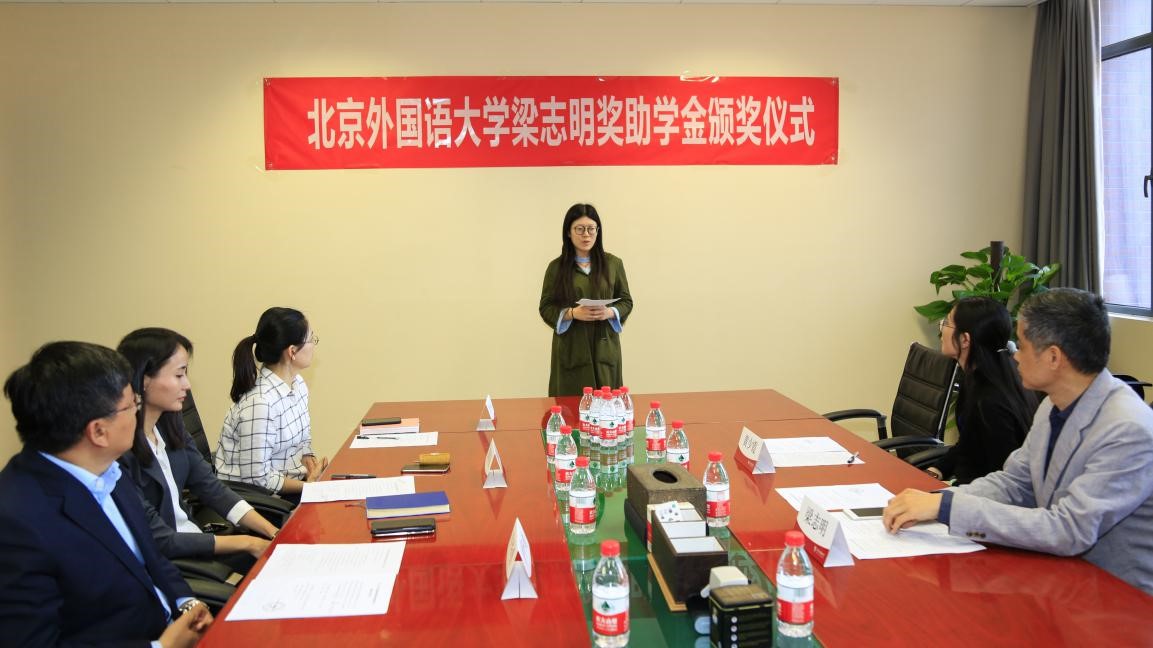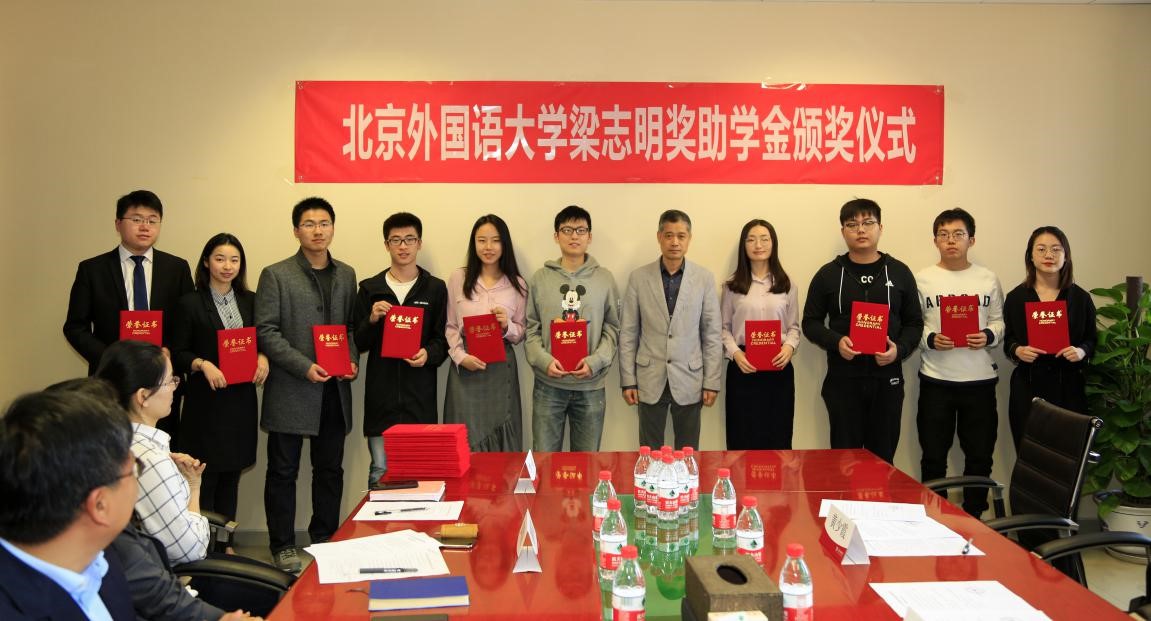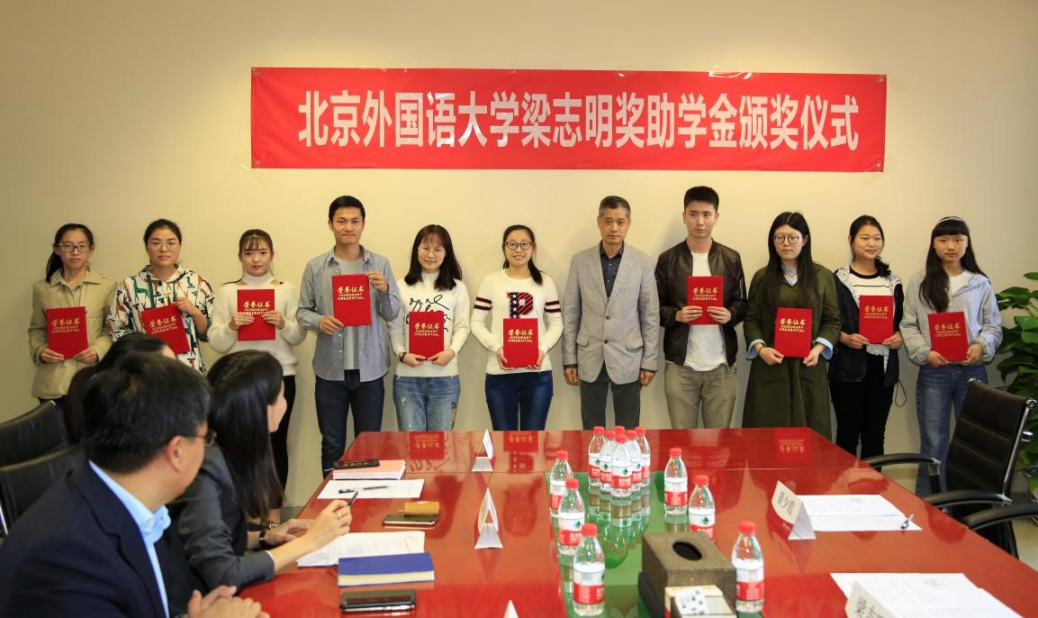 梁志明表示捐赠和设立奖学金,是对员工刻苦学习的鼓励,祝愿北外师生在学术和教学领域取得更大进步,希望获奖员工学会感恩,同时以奖学金为新的起点,鞭策自己在未来创造更好的成绩,承担更多的社会责任。并为所有获奖员工颁发了获奖证书。