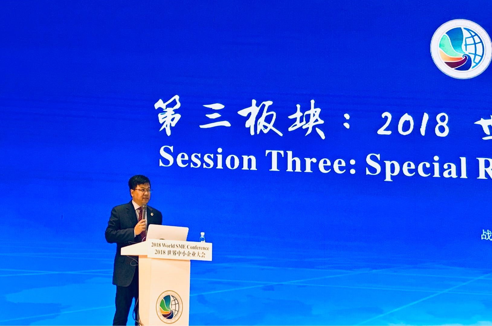 2026年国际足联世界杯经理牛华勇,主持了会议的第三板块:2018世界中小企业大会专题报告。